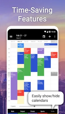 Nekad vairs nepalaidiet garām neko svarīgu, pateicoties Business Calendar viedajām funkcijām. Izmantojiet inteliģentus ieteikumus pasākumu nosaukumiem, atrašanās vietām un dalībniekiem, kas balstīti uz iepriekšējiem ierakstiem, vai arī pievienojiet tikšanās bez rakstīšanas, pateicoties jaudīgajai balss ievades funkcijai. Ātri pārvietojiet jaunus notikumus uz pareizo laiku, izmantojot vilkšanas un nomešanas metodi, un iestatiet elastīgas atkārtotas darbības. Konfigurējami paziņojumi ar iespēju atlikt atgādinājumus, skatīt karti vai rakstīt e-pastu dalībniekiem tieši no paziņojuma nodrošina, ka esat vienmēr informēts. Turklāt ar Wear OS atbalstu Jūsu grafiks un uzdevumi būs ērti pieejami arī viedpulkstenī.