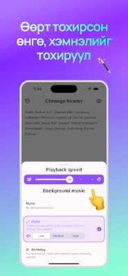 Чимэгэ уншигч ir lietotne, kas automātiski nolasa mongoļu tekstu. Tā pārveido jūsu ievadīto tekstu augstas kvalitātes cilvēciskā balsī, palīdzot ar paziņojumiem, reklāmām, izglītību un audio grāmatām mongoļu valodā. Izbaudiet lasīšanas nākotni ar Чимэгэ уншигч.