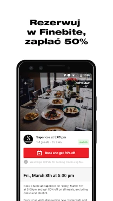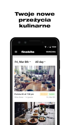 Kā darbojas Finebite? Aplikācijā atklāsiet ekskluzīvu restorānu izlasi, kas katru dienu piedāvā tikai vienu rezervāciju ar 50% atlaidi. Šie īpašie piedāvājumi kļūst pieejami pusnaktī un aptver nākamās septiņas dienas, sniedzot jums iespēju plānot savu gastronomisko ceļojumu laicīgi. Ar gandrīz 1000 partnerrestorāniem daudzās Polijas pilsētās, tostarp Varšavā, Krakovā, Gdaņskā, Vroclavā un citās, Finebite nodrošina plašu izvēli katrai gaumei un noskaņojumam. Izvēlieties savu sapņu vietu, veiciet rezervāciju un gatavojieties baudīt kulinārijas šedevrus.
