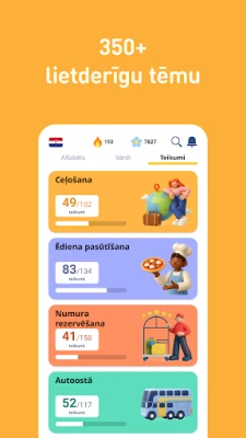 Ar FunEasyLearn Jūsu rīcībā ir plaša horvātu valodas resursu kolekcija. Iegremdējieties 6000 rūpīgi atlasītos vārdos, sākot no visbiežāk lietotajiem lietvārdiem un darbības vārdiem līdz īpašības vārdiem, kas sakārtoti 7 līmeņos un 200 tematiskajās grupās, lai atvieglotu apguvi. Papildus tam, atklājiet 5000 praktisku frāžu ikdienas saziņai un ceļojumiem, kas sadalītas 10 līmeņos un 120 tēmās. Šī sistemātiskā pieeja, ko izstrādājusi pieredzējušu valodnieku un skolotāju komanda, apvieno alfabētu, lasīšanas noteikumus, vārdu krājumu un frāzes vienotā, intuitīvā platformā. Tas ļauj vizualizēt, izrunāt, saistīt ar attēliem un nostiprināt zināšanas ar interaktīvām spēlēm.