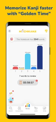 MochiMochi izmanto revolucionāru pieeju, lai nodrošinātu maksimālu efektivitāti ar minimālu piepūli, pateicoties īpašajai "Zelta laika" funkcijai. Mūsu gudrie algoritmi nepārtraukti analizē jūsu mācīšanās gaitu, precīzi nosakot brīdi, tieši pirms vārdu krājums sāk izgaist no atmiņas, un maigi atgādina par atsvaidzināšanu. Šī viedā sistēma ļauj jums mācīties mazāk, bet atcerēties daudz efektīvāk, garantējot, ka apgūtās zināšanas nostiprināsies ilgtermiņā un kļūs par stabilu pamatu jūsu valodu prasmēm.