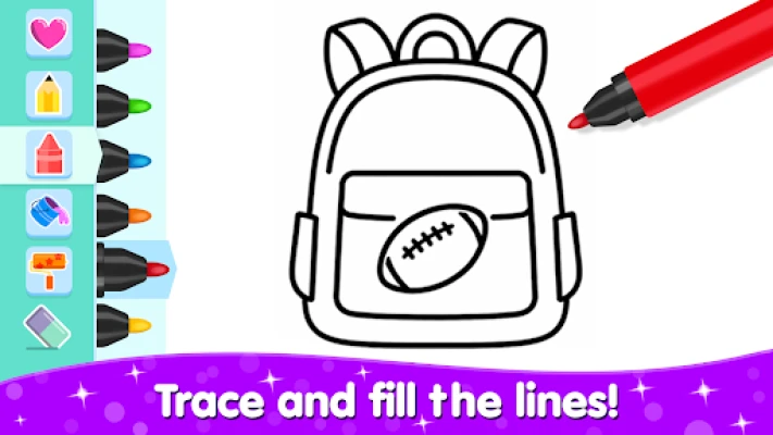 Iegremdējieties aizraujošā radošuma un krāsu pasaulē ar lietotni "Coloring Games" – ideālu vietu mazajiem māksliniekiem. Šī lietotne ir radīta, lai iedvesmotu zēnus un meitenes, piedāvājot plašu formu un krāsu paleti, kas atdzīvinās katru fantāziju. No majestātiskām jūras radībām līdz rotaļīgiem dinozauriem, katra kategorija ir unikāls ceļojums, kas piepildīts ar burvīgiem dizainiem, gaidot, kad tos iekrāsos jūsu bērna iztēle. Izbaudiet nebeidzamas stundas, pētot dažādas tematikas un izstrādājot savus mākslas darbus.